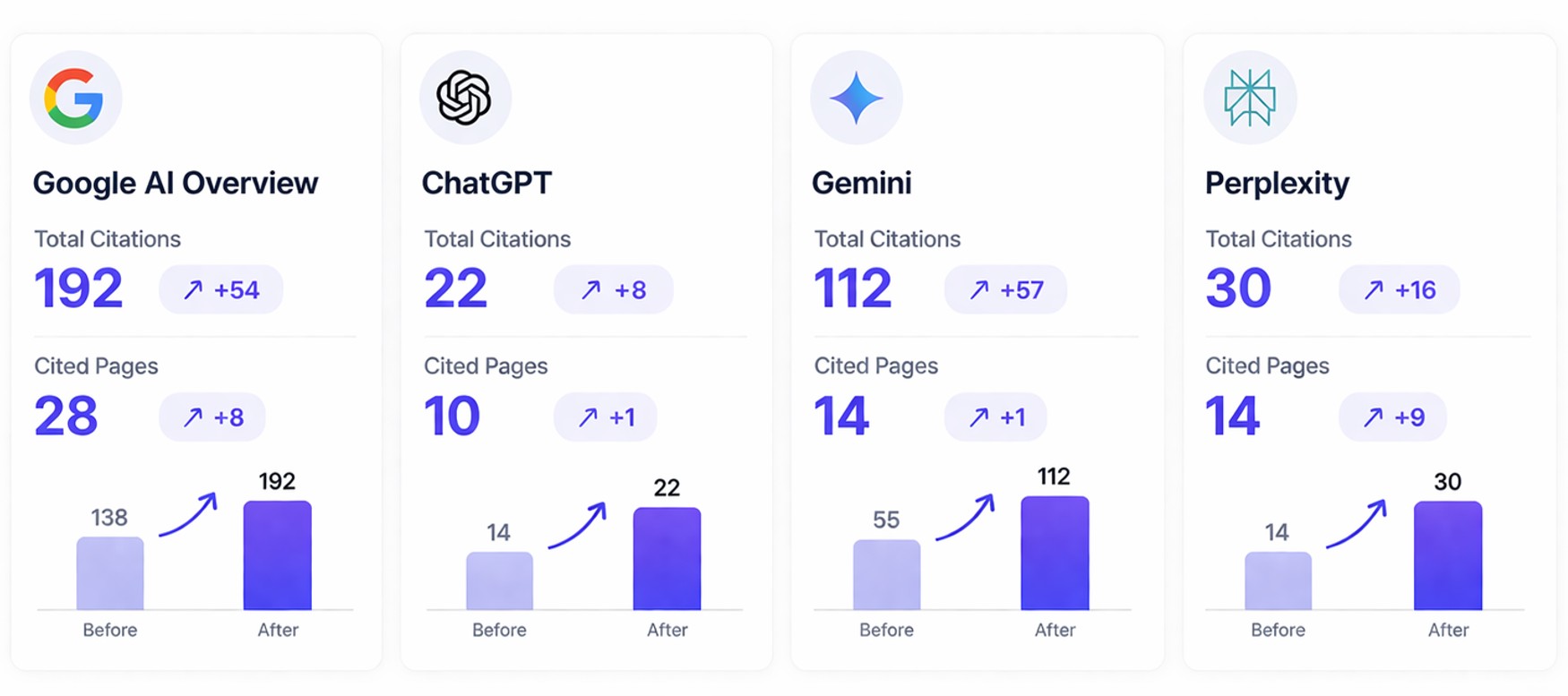 The campaign produced measurable growth in AI citation visibility across multiple platforms.