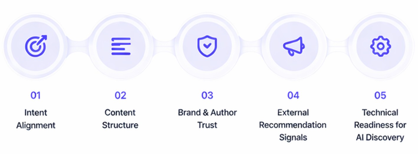 Instead of treating AI platforms as a side effect of SEO, we built a dedicated framework around five core areas: